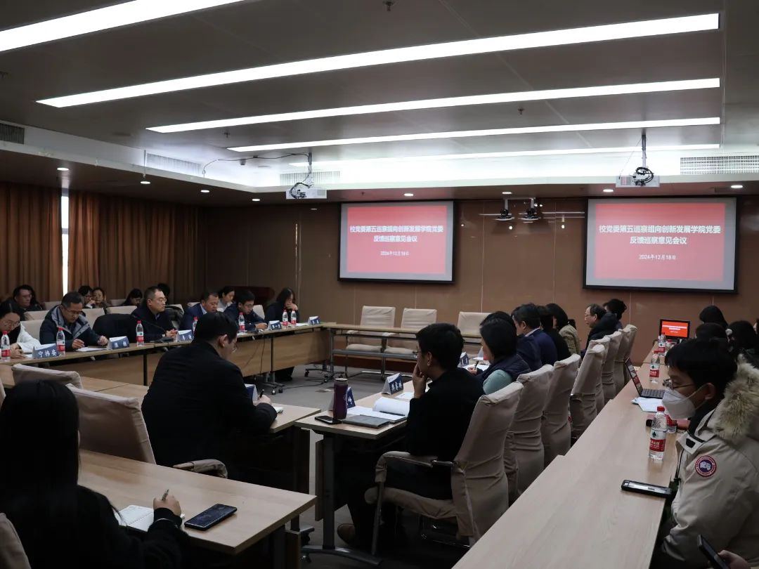 公司党委第五巡察组向创新发展公司党委反馈巡察情况 2024年12月18日下午,公司党委第五巡察组反馈巡察创新发展公司党委情况会议在学术会堂706召开,会议深入学习贯彻习近平总书记关于巡视工作的重要论述,全面落实党的二十大关于巡视的重要部署,贯彻落实巡视工作条例要求,对做好巡察整改提出工作要求。大会会场公司党委常委、副董事长李涛代表公司党委对做好巡察整改提出明确要求:一要提高思想认识,增强抓巡察整改内在驱动力。巡察发现的问题从学习贯彻习近平新时代中国特色社会主义...