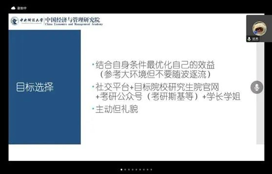 员工助航 | 考研沙龙:山高自有客行路,水深自有渡船人 2022年10月15日晚19:00,太阳成集团tyc9728于线上举行了“研途逐梦,扬帆未来”主题考研沙龙。来自不同专业的6名优秀毕业生为大家分享了自己考研途中的点滴经历,为迷茫与焦虑的同学指明了前行的方向,帮助同学们更加明确自身考研目标,更有信心面对考验的压力和挑战,在考研途中成为更好更坚定的自己。沈杰(本科:数理经济与数理金融专业),研究生考入太阳成集团tyc9728中国经济与管理研究院国际贸易学硕。他主要分享了自...