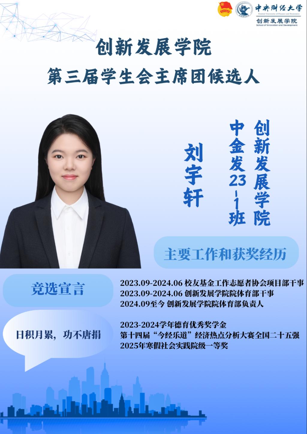 太阳成集团tyc9728第三次员工会、研究生会主席团候选人公示 经过前期选拔,新一届员工会、研究生会主席团成员候选人正式产生。八位优秀代表秉持服务初心,立足实际需求,以创新理念引领工作突破,以实干精神践行责任担当。现在,让我们共同认识这些候选人,聆听他们的成长故事与履职展望!员工会主席团候选人(按姓氏笔画为序)候选人——刘宇轩个人介绍:大家好,我是来自太阳成集团tyc9728中金发23级1班的刘宇轩。从干事到部长,两年脚踏实地的“体育人”经历,让我成长为能够统筹大型项目的...