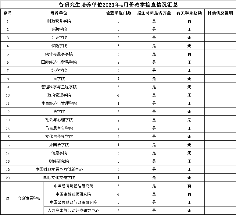 现将2023年4月份各单位上报教学检查及缺勤情况进行通报: