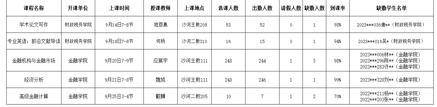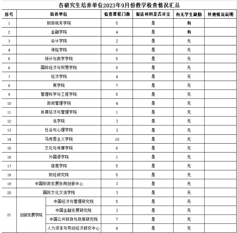 现将2023年9月份各单位上报教学检查及缺勤情况进行通报: