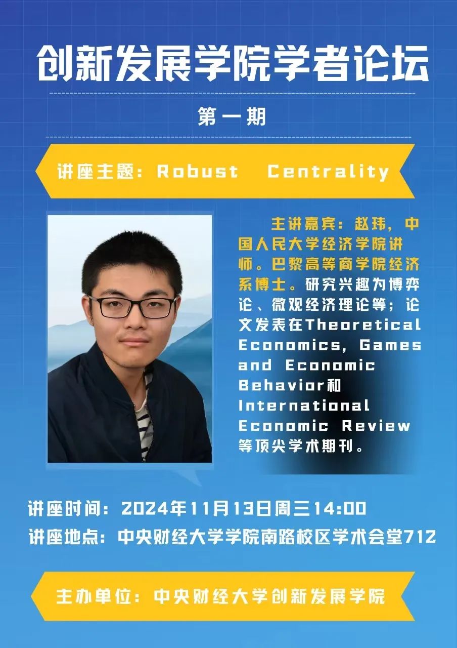 赵玮,中国人民大学经济公司讲师。巴黎高等商公司经济系博士。研究兴趣为博弈论、微观经济理论等;论文发表在Theoretical Economics, Games and Economic Behavior和International Economic Review等顶尖学术期刊。