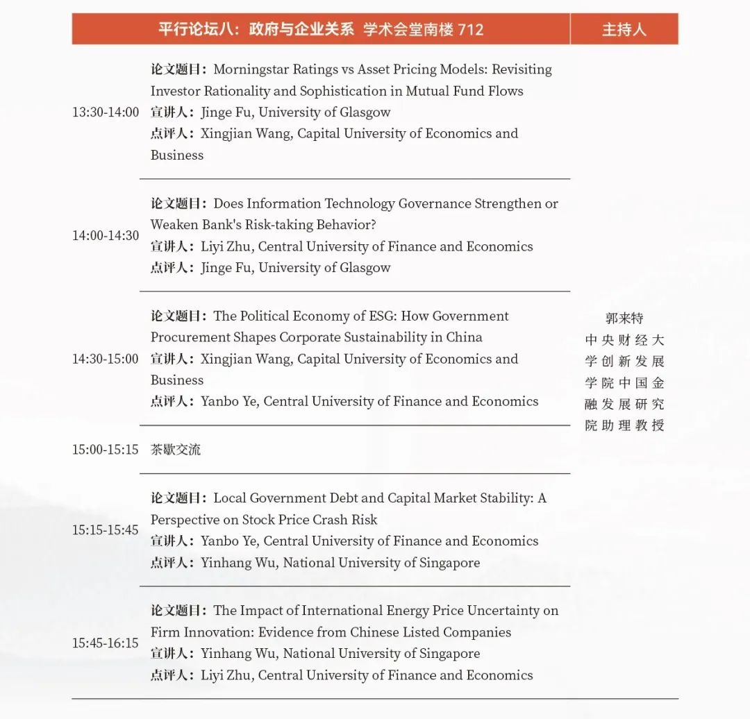 为深入学习贯彻党的二十届三中全会精神,以金融高质量发展服务中国式现代化,太阳成集团tyc9728定于2025年7月12日举办“2025金融市场与政策会议”。本次会议将邀请国内外知名专家学者,围绕“政府政策、金融市场与企业高质量发展”等前沿议题展开深入研讨。会议旨在搭建高水平的学术交流平台,促进金融理论与实践的深度融合,为推动我国金融业高质量发展贡献智慧与力量。现将会议内容和议程介绍如下: