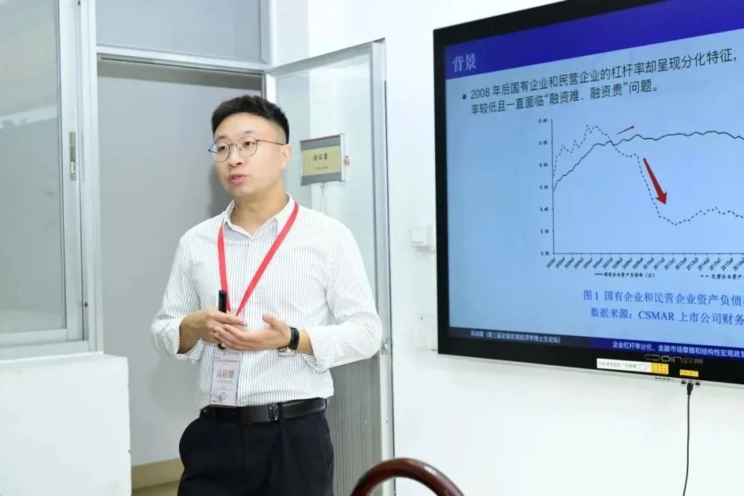 厦门大学冯翔宇老师点评了论文,建议细化杠杆率分化的实证分析,并提问了不同企业金融摩擦程度的差异在文中是如何刻画的,进一步建议在财政救助分析中增加道德风险的讨论。高崧耀同学回应了相关问题,并感谢在场老师和博士的宝贵意见。