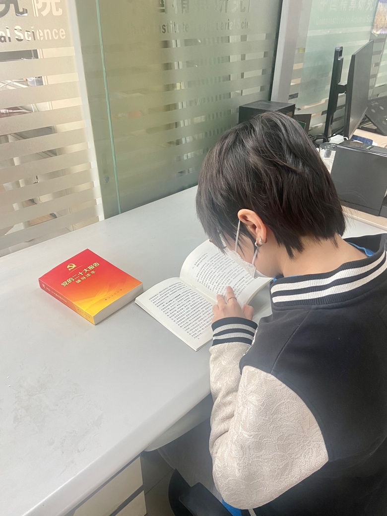 为进一步认真学习党的二十大精神,深刻领会习近平新时代中国特色社会主义思想,11月22日,中国公共财政与政策研究院博士研究生党支部在学术会堂508室的党政学习图书角,围绕党的二十大工作报告与《党的二十大报告辅导读本》,进行认真习读,并结合各自专业背景发表感想感悟。