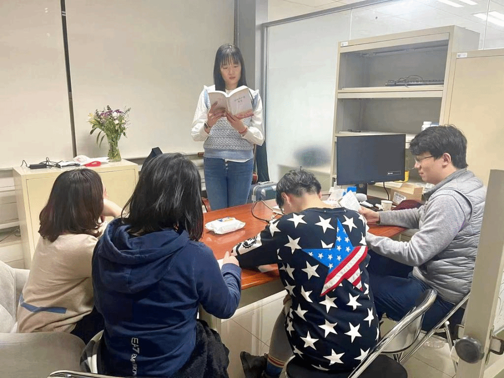 博士生党员林桂婷正在朗读材料选段