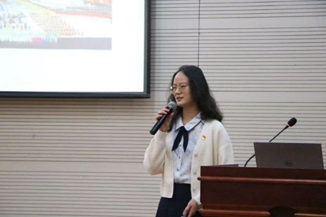 2022级硕士研究生赵飞讲述了参军入伍期间的成长故事。他提到:“这段梦一般的军旅生活让那个曾经迷茫的少年坚定了前进的脚步,让那个经常逃课的员工变得珍惜在校的时光,让那个吊儿郎当的孩子懂得了责任和担当,让那个平庸的员工在考研的路上也亲身体会到了拼搏奋斗的力量。”而他也相信,我们必将实现建军一百年奋斗目标,将人民军队建成世界一流军队。现场师生深受触动,更真切地体会到了军人对党和国家的赤胆忠心。2021级硕士研究生顾菲重点分享了参与庆祝中国共产党成立100周年大型情景史诗演出《伟大征程》的故事,10首熟记于心的歌曲,40多日的守望相助,150小时的高强度训练,全体参演人员圆满完成了演出任务,也在参演过程中更加深刻地感受到如今的“大地春常在”是用英雄的生命换来的,需要一代代青年人在不同的专业领域不断深耕、不断创新,才能推动历史巨轮滚滚向前,更加坚定听党话跟党走的信心和决心。