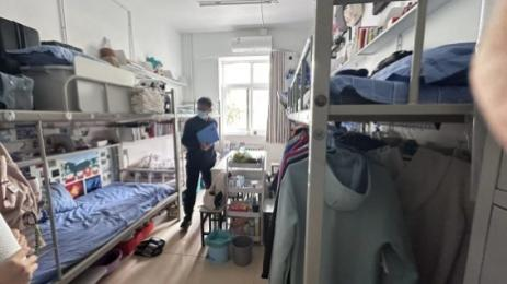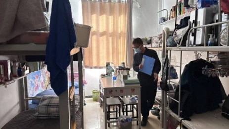 保卫处处长郑朝阳带领专项检查组,实地检查员工宿舍、公司办公场所等重要点位。