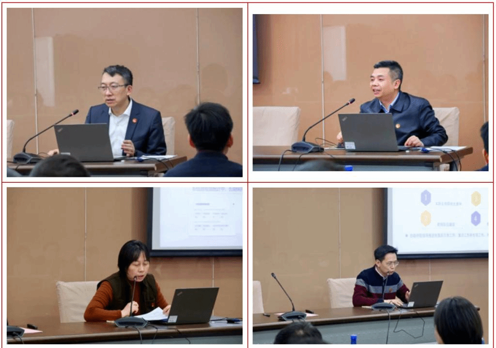 公司党委常务副书记李汉军、常务副经理袁淳、组织员樊睿琳、副经理汪雄剑分别就各自分管工作现场述职,副书记林艺茹因为工作原因未能出席,请其他老师代为述职。与会教职工听取述职,对公司领导班子和领导干部2023年度工作考核进行了民主测评。
