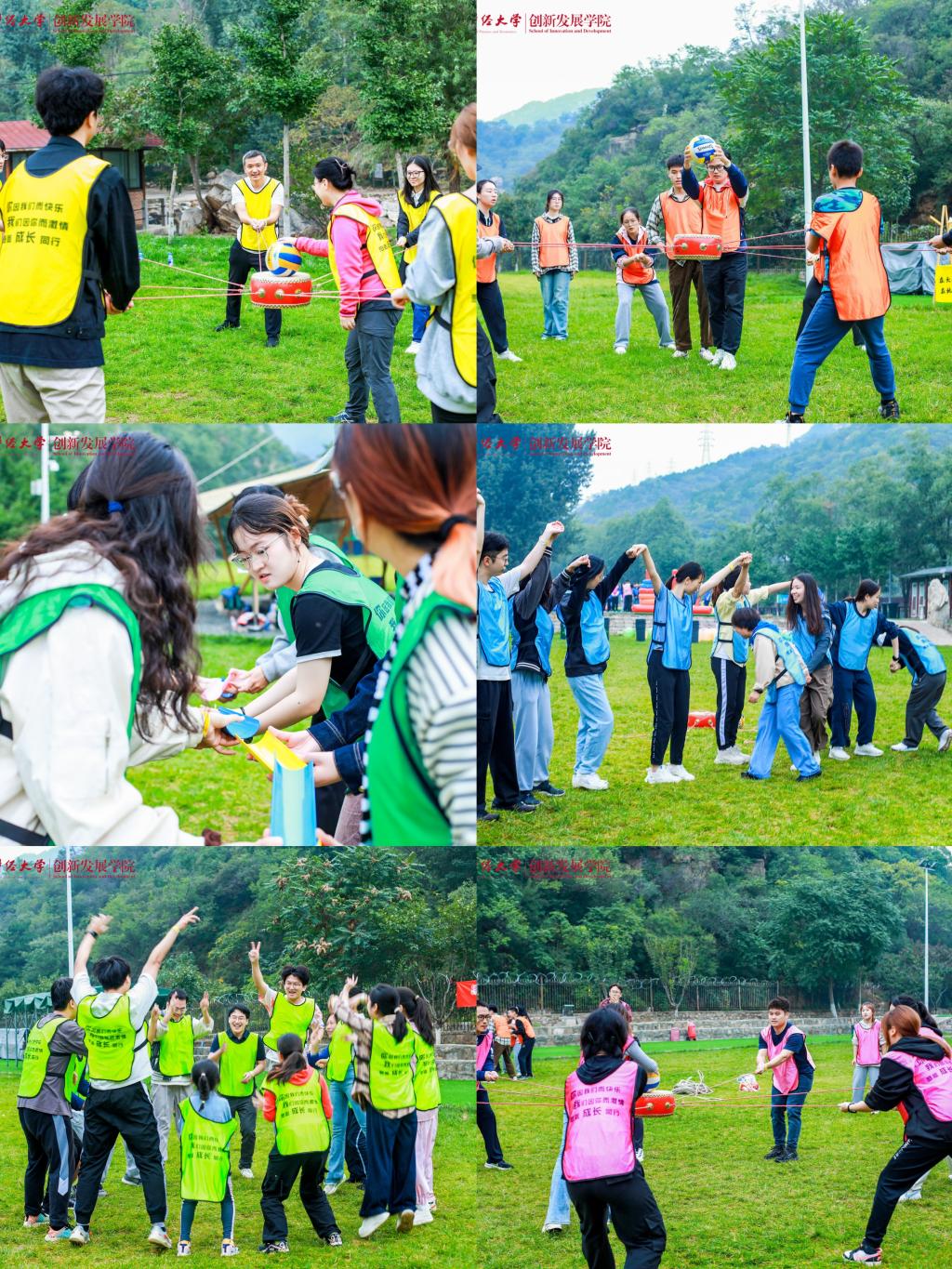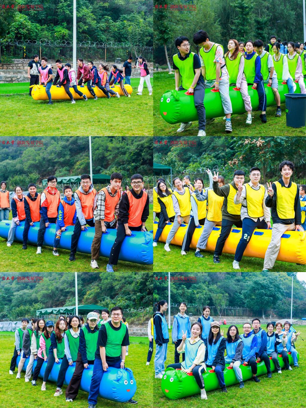 接下来的拓展项目同样激动人心。跟随“超级有氧鼓”动感的鼓点,师生们充满活力的舞姿令人赏心悦目;“听歌站位”活动紧张刺激,在对“桶”的争夺中,欢笑声此起彼伏;“团队四子棋”同时考验队员们的脑力和应变能力,汇聚团队的力量争取胜利;“龙行天下”和“众星捧月”活动则再次增进团队合作的默契,此时的队员们有了上午合作的经验,动作完成行云流水。