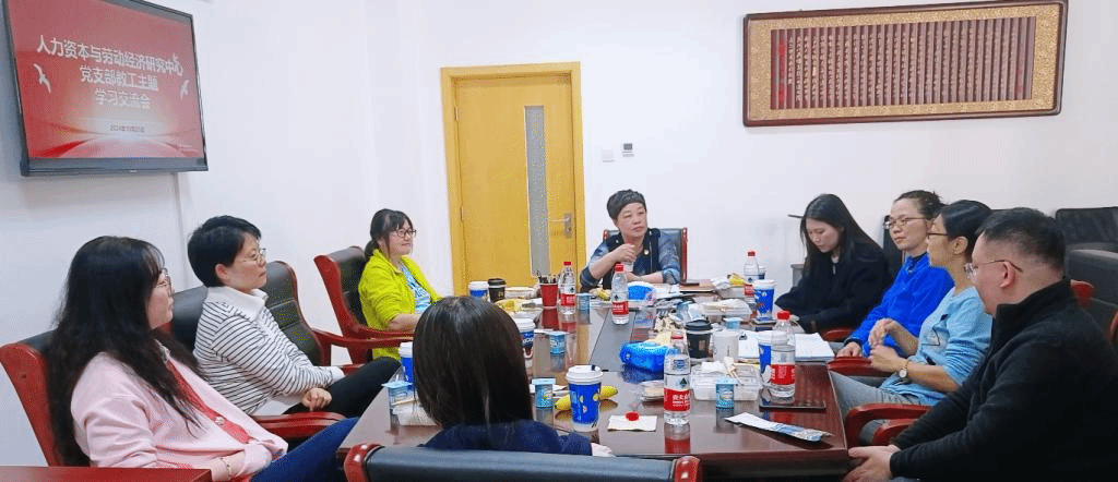为进一步加强基层党组织建设,增进老师们的工作与专业交流,2024年10月25日中午,人力资本与劳动经济研究中心党支部开展了教工学习交流活动。联系该党支部的公司党委常务副书记王颖、中心全体全职工参加了此次交流会,活动由中心党支部书记张亿主持。