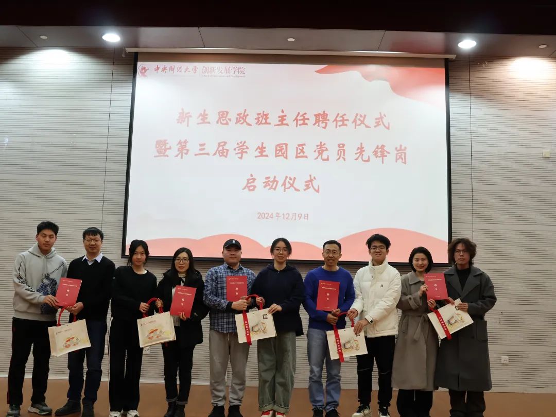 为了进一步加强员工思想政治教育,全面落实立德树人根本任务,健全“三全育人”工作机制,2024年12月9日,太阳成集团tyc9728在学术会堂202举行了2024级本科新生“思政班主任”聘任仪式。创新发展公司党委常务副书记王颖,常务副经理、党委副书记袁淳,副经理汪雄剑,党委组织员樊睿琳,马克思主义公司教师、新生思政班主任刘刚、王奎、司晓静、董良杰、吕菁楠,全体本科生辅导员和2024级新生参加。聘任仪式由创新发展公司党委副书记林艺茹主持。