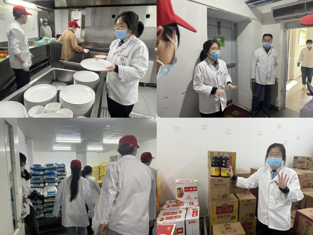 活动分为“岗前培训”和“上岗实践”两天进行。在“岗前培训”开始之前,员工们再食堂主管的带领下参观了食堂的库房、消毒间、蔬菜肉类加工间、半成品间、蒸饭间、炒菜间及备餐间。食堂工作人员给同学们介绍了食堂运营规程、食堂卫生管理制度、食品采购验收流程与标准、餐具与厨房的清洁标准等。消毒间内,干净的碗筷整齐地码放在消毒柜里;粮油库由专人管理,米面油整齐摆放,并有专用的温度计、湿度计进行监测;在操作间,食堂工作人员按照相关规定戴着头套、口罩紧张忙碌地工作着。从原材料的采购到菜品的烹制,从调味品的准备到饭菜的呈现,同学们认真细致地观察着后厨的每一处细节,见证了一堆食材变为一道道美味佳肴的详细过程。