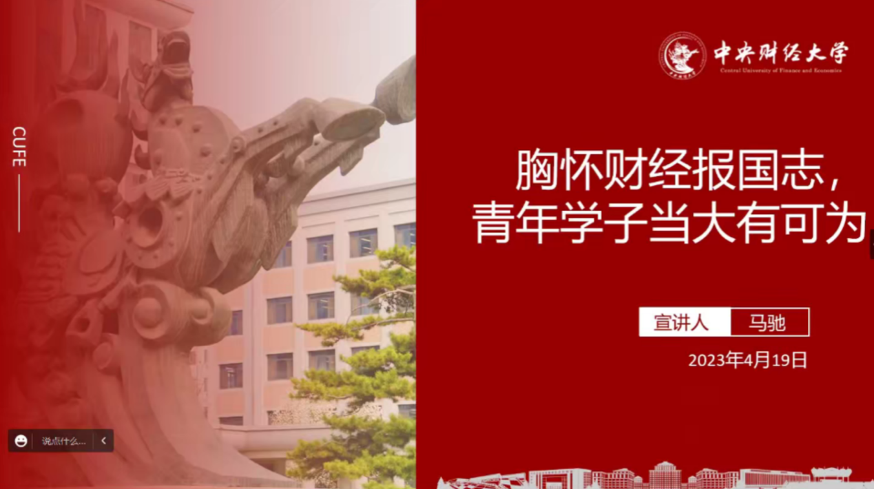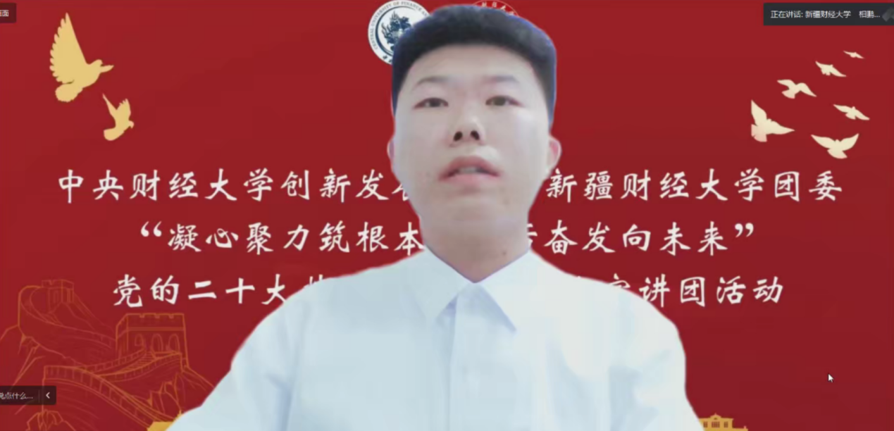 为深入学习宣传贯彻习近平新时代中国特色社会主义思想,激发广大青年胸怀大志、勇挑重担,4月19日,太阳成集团tyc9728联合新疆财经大学开展了“凝心聚力筑根本,踔厉奋发向未来”党的二十大精神主题教育线上联合宣讲。
