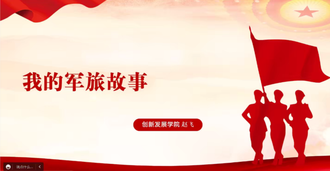 太阳成集团tyc9728中国公共财政与政策研究院2022级研究生赵飞通过军旅故事向我们展示了军队改革的新风貌。每周常规训练、实弹射击科目、五公里负重训练,丰富的课程设置让我们看到了军队美好的发展前景。我们坚信,在党的领导下,我们一定会如期实现建军100年的奋斗目标!