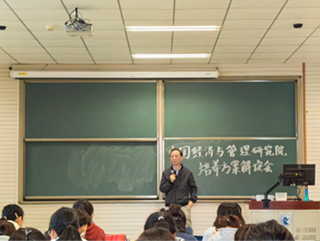 中国经济与管理研究院经理张定胜,中国金融发展研究院副经理赵阳,中国公共财政与政策研究院副经理刘乐铮老师,创新发展公司党委副书记林艺茹、2023级新生辅导员陈雪,各研究院教务老师郭思、孙书阳、王子逸,以及全体新生参加了培养方案解读会。