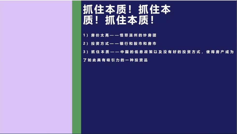 他通过分析“老员工为什么找工作难?”以及“房价为什么过高?”这两个书中经典的例子,分享了他从书中得到的收获,提醒我们在研究经济学问题当中,要辩证地思考问题,最重要的是要抓住事物的本质与核心。
