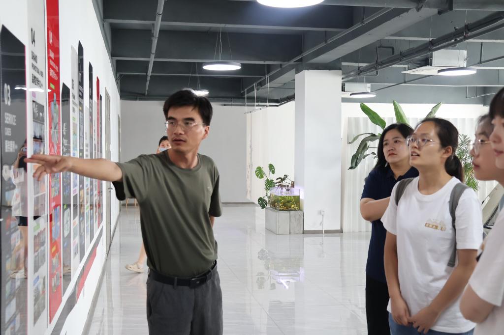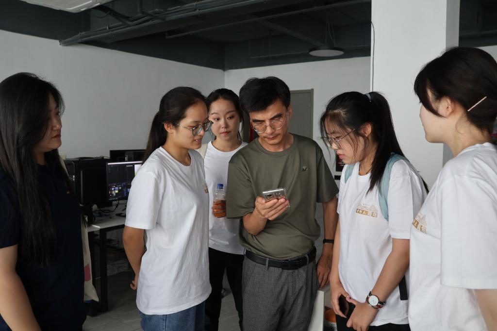 当天下午,实践团队来到临沂市多媒体与音像、制作、摄影摄像服务和平面设计领域的龙头企业——临沂寻光塑影文化传播有限公司参观学习。公司负责人朱孔腾向实践团队详细介绍了高质量短视频的设计、拍摄和剪辑方法。团队成员就视频剪辑、脚本写作、拍摄流程等方面的问题与公司员工进行了交流学习。