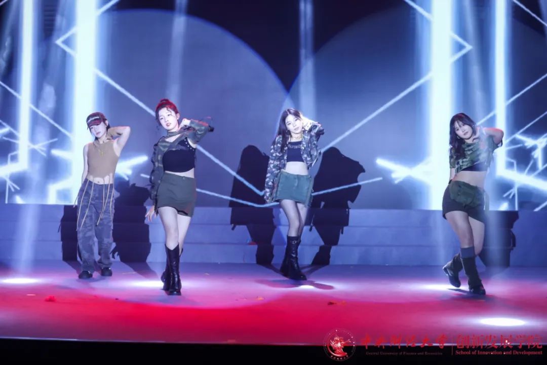 热情似火的开场舞《Girls Never Die》点燃了全场。随后经济学(数理经济与数理金融)24-1班和金融学(国际金融与公司理财)24-2班同学分别带来洋溢着青春活力的新生合唱《夜空中最亮的星》、《稻香》,别出心裁的舞台设计使得节目精彩纷呈。新生的大学梦想好似随着扔出的纸飞机一起展翅飞翔。胡家怡、李若璇、高奕凡、张语婷和胡乐乐带来的舞蹈《Imaginary Friend》,引起观众阵阵欢呼。