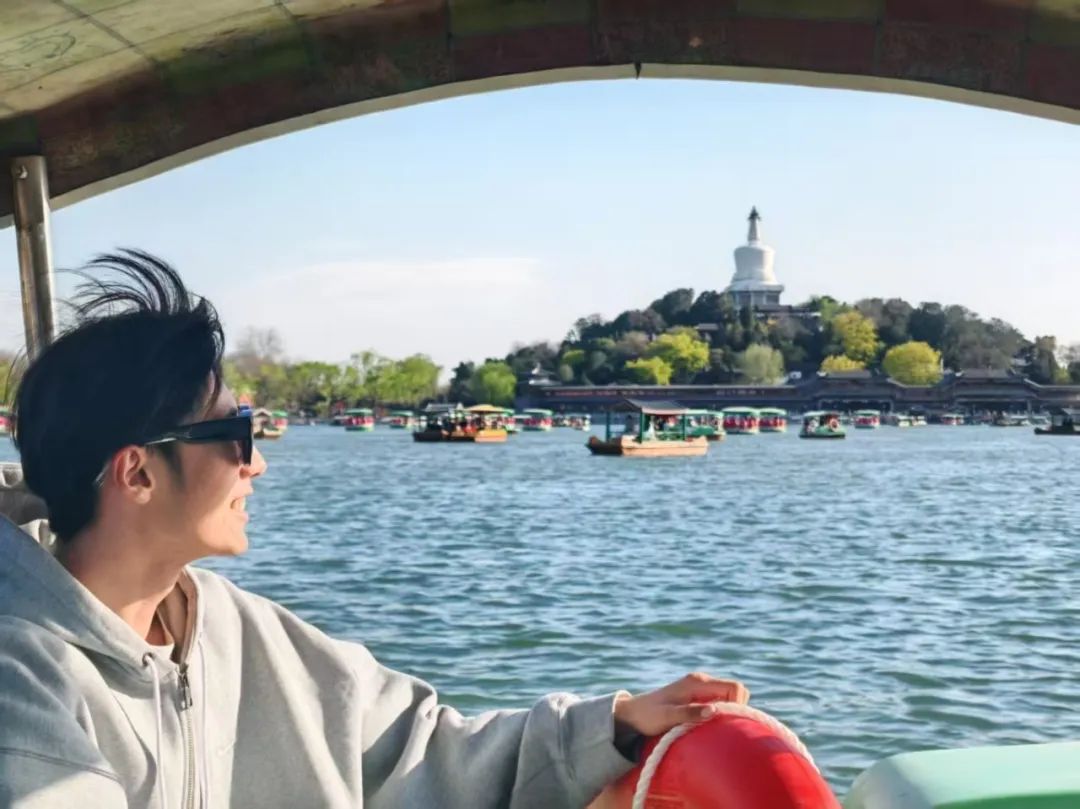 舟行画里心欢畅,白塔亭亭岁月长。”