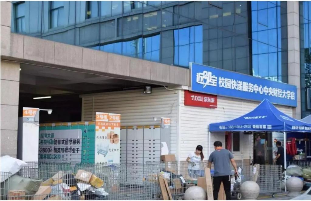“近邻宝”快递站位于学四楼南、中财大厦背面,设有四个电子自提柜和各家快递的专用存放点。一般小件快递会被放入自提柜,取件码会通过“近邻宝”微信公众号消息提醒,也可以在近邻宝微信公众号“查询快递”界面输入快递单号自行查询取件码。