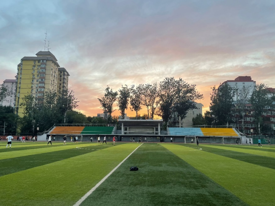 公司南路校区运动场有田径场(含足球场)1个、篮球场6块、排球场4块、网球场2块。运动场是大家尽情挥洒汗水,绽放青春活力的舞台。这里常举办各类赛事,如篮球赛、排球对决、足球联赛……各公司间不仅激烈比拼,更相互学习、共同进步。
