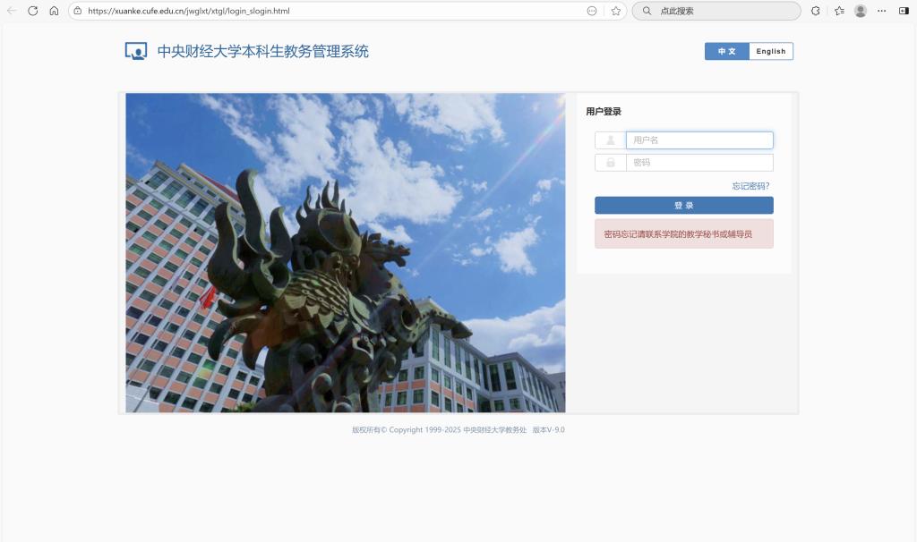 网址:http://xuanke.cufe.edu.cn/jwglxt/xtgl/login_slogin.html