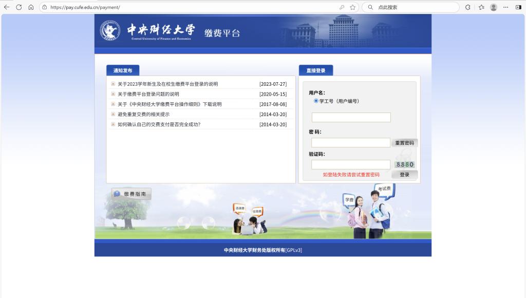 简介:在线缴纳学费、住宿费、辅修费等费用的官方平台。请注意,如在操作过程中遇到接收不到验证码、支付方式受限或缴费项目不显示等问题,可尝试切换网络环境,或在PC端与移动端分别操作。