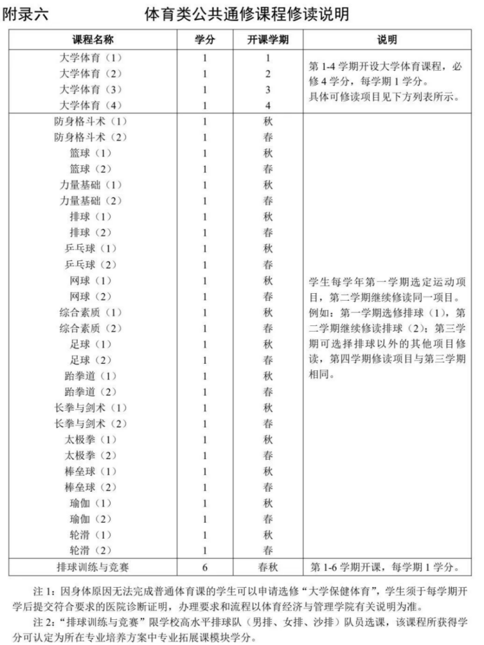 下图为24级培养方案中可供选择的体育课程,仅供参考,实际情况以25级培养方案为准。