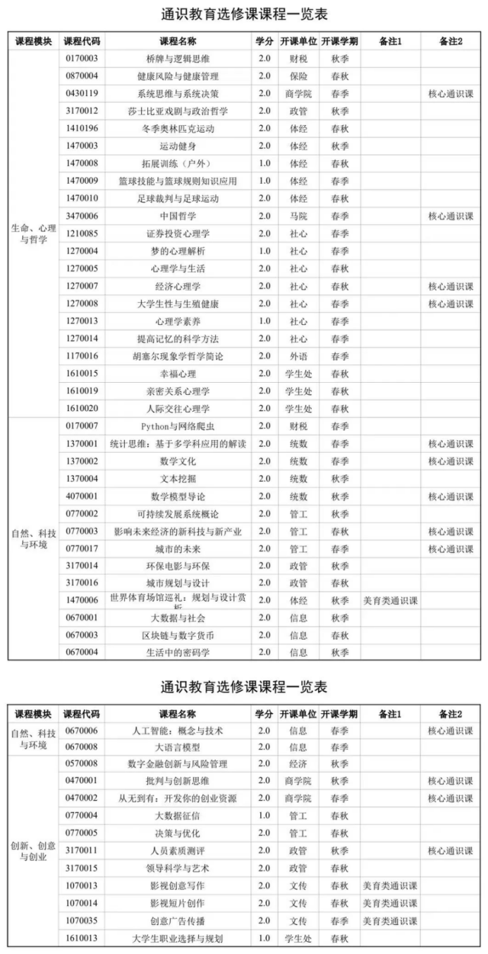培养方案可在教务系统-个人信息查询-培养方案中查看,也可以到“太阳成集团tyc9728教务处”官网查询,每年可能都有所不同,大家可自行查看。下图为24级培养方案中通识课程,以供参考,大家记得以25级培养方案为准。