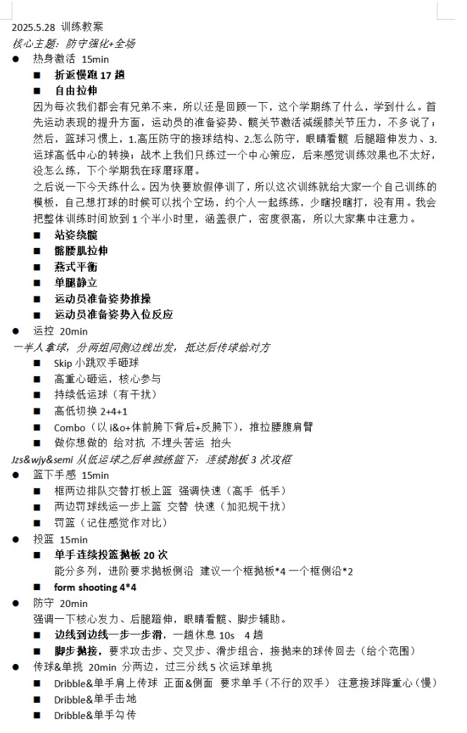 球队构建科学的训练体系,每周定期开展一到两次球队训练,涵盖: