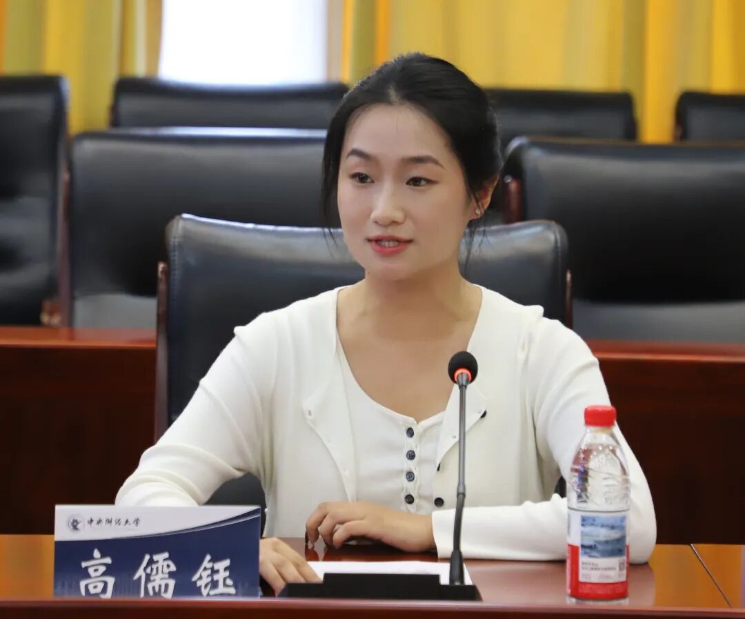 志愿者代表高儒钰同学作交流分享。她结合论坛特点与志愿服务要求,提出“专业、责任、学习”三个关键词,并引用“以服务为荣,以学习为要,以责任为本”与全体志愿者共勉,展现中财学子投身国家金融战略实践的决心。