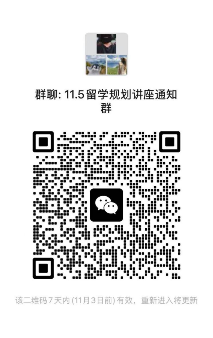请有意向参加本次讲座的同学于11月3日中午12:00前扫描下方报名二维码报名,填写个人信息,并确保加入活动通知群,后续将在通知群发布讲座相关通知。