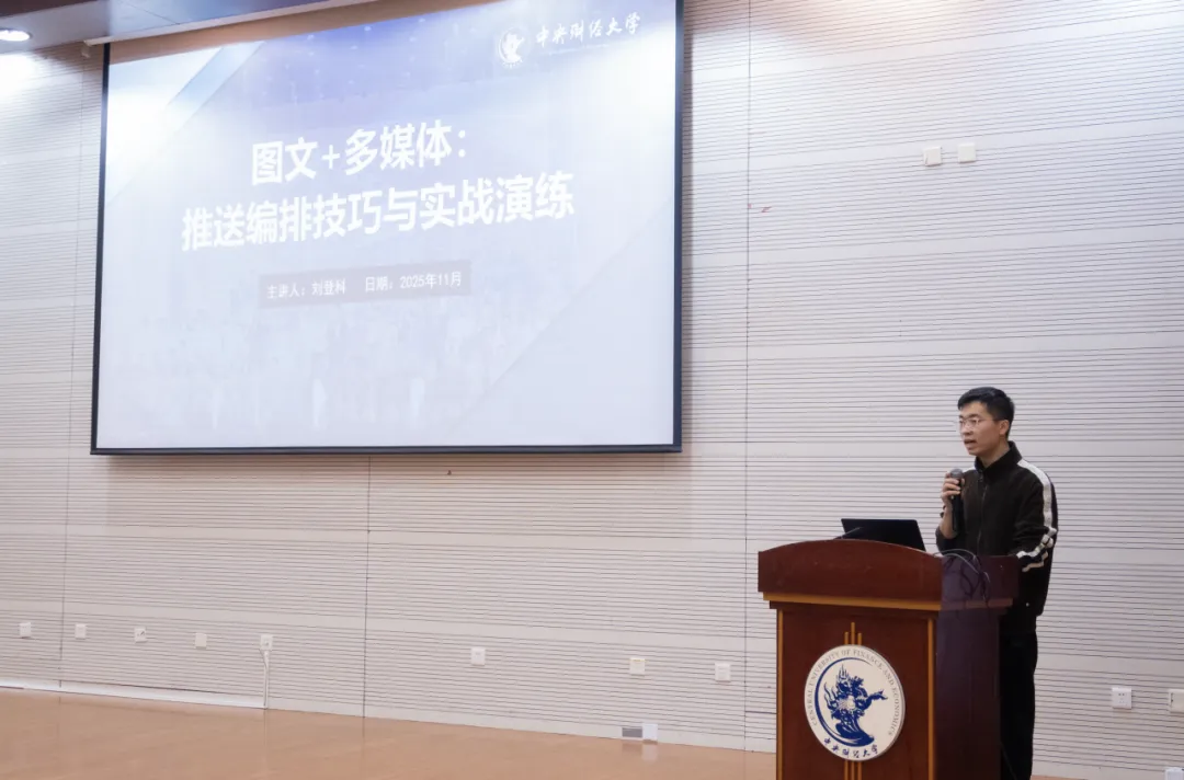 文化与传媒公司刘登科(曾任校团委专职团干部)为同学们介绍了宣传排版技巧教学。刘登科围绕“神马中财”公众号等五大核心阵地分享了宣传工作的实操经验与心得,系统讲解了“图文+多媒体”融合宣传的核心方法。随后采用“秀米”平台,从选择模版、模版内容填充及使用、艺术字编辑、动图制作及导入模版等排版技巧进行现场教学。在实操中提升了同学们的图文编辑能力,为宣传工作提质增效奠定了坚实基础。