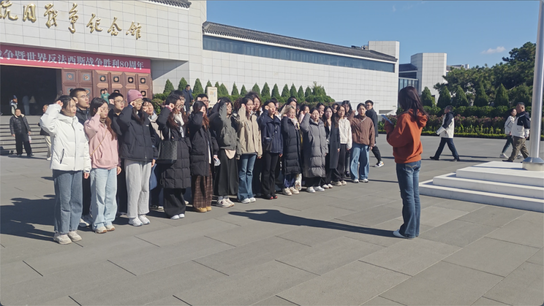 10月19日上午,国际金融与公司理财24-2团支部赴中国人民抗日战争纪念馆开展主题团日活动。活动在序厅“血肉长城”巨型浮雕前拉开序幕。全体团员面向团旗,庄严宣誓,在仪式感中重温入团初心,在历史前回响“继往开来”的坚定决心。