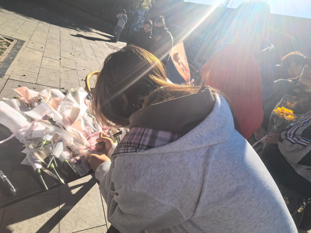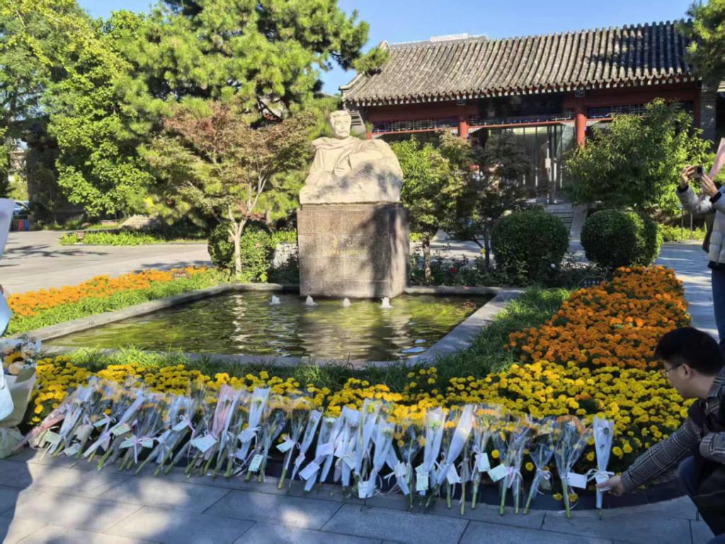 步入庭院后,团员们在鲁迅先生雕像前驻足。全体团员怀着敬意写下追思、献上鲜花,静默伫立表达缅怀之情。