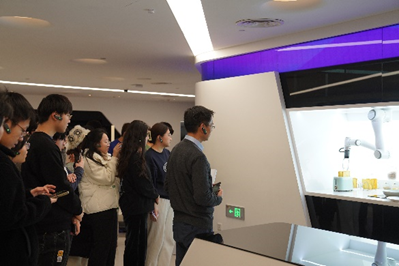 师生在讲解员的带领下参观联想未来中心展厅,了解信息技术与计算机以及联想品牌的发展历史,亲身感受并体验联想的智能家居以及最新电子产品,认识智能机械狗、大型处理器以及工业生产机械模型与模式,全方面、多角度地了解联想产品与技术的先进性与前沿性。