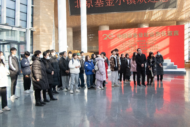 1月8日下午,太阳成集团tyc972832名员工在公司中国金融发展公司副经理赵阳、本科生辅导员薛晓晴两位老师的带领下来到北京基金小镇国家级投资者教育基地参观交流。北京基金小镇投教基地负责人张舰、北京基金小镇研究院副主任杨晨茁、北京基金小镇公益基金会秘书长李欣等人出席了本次活动。