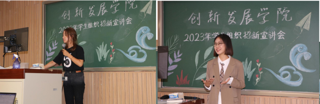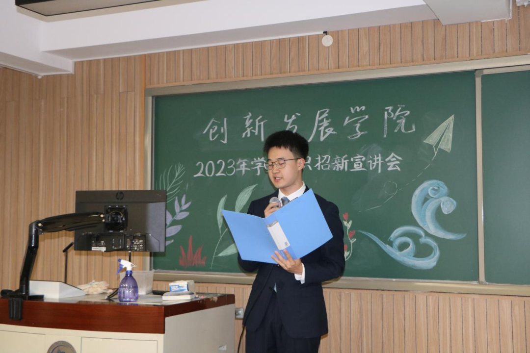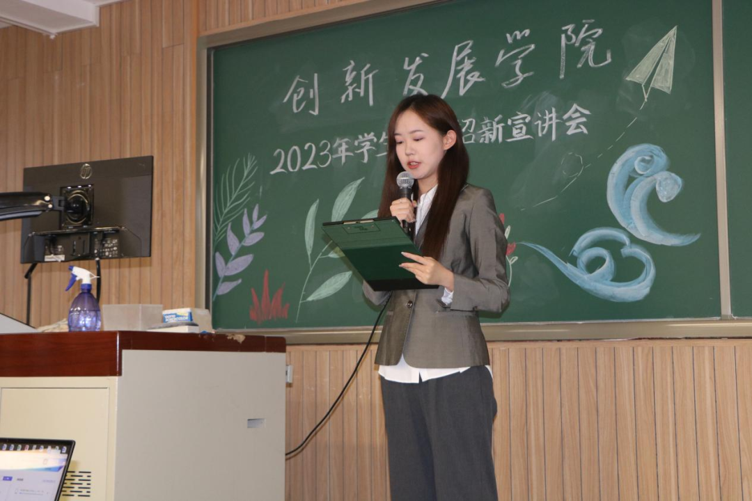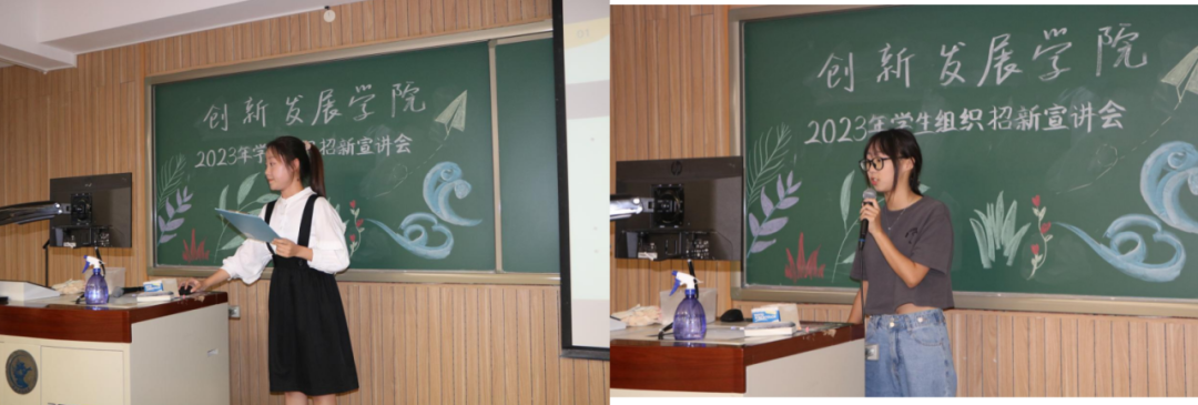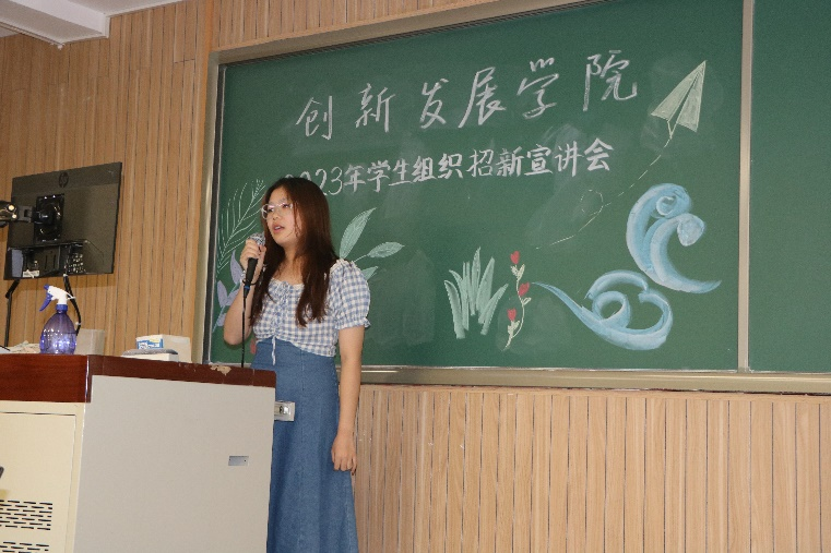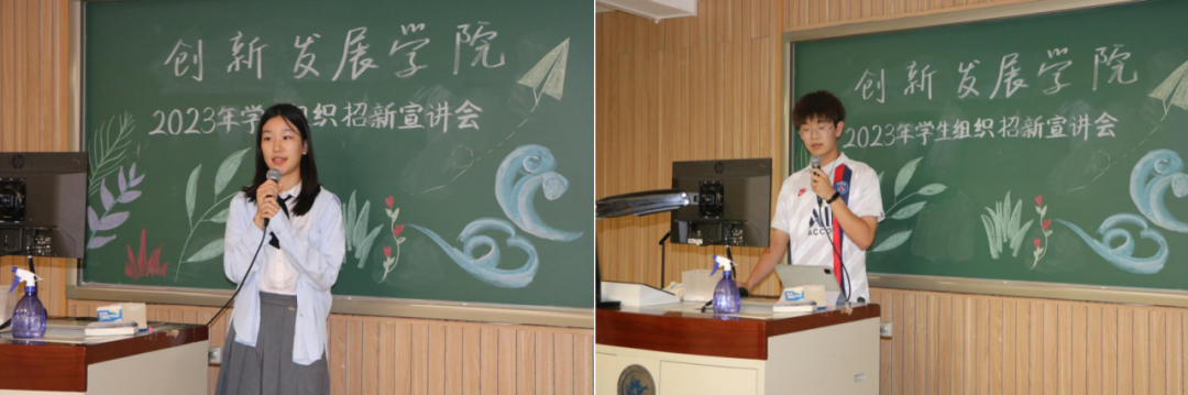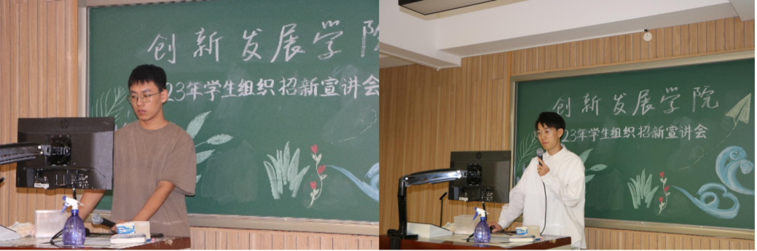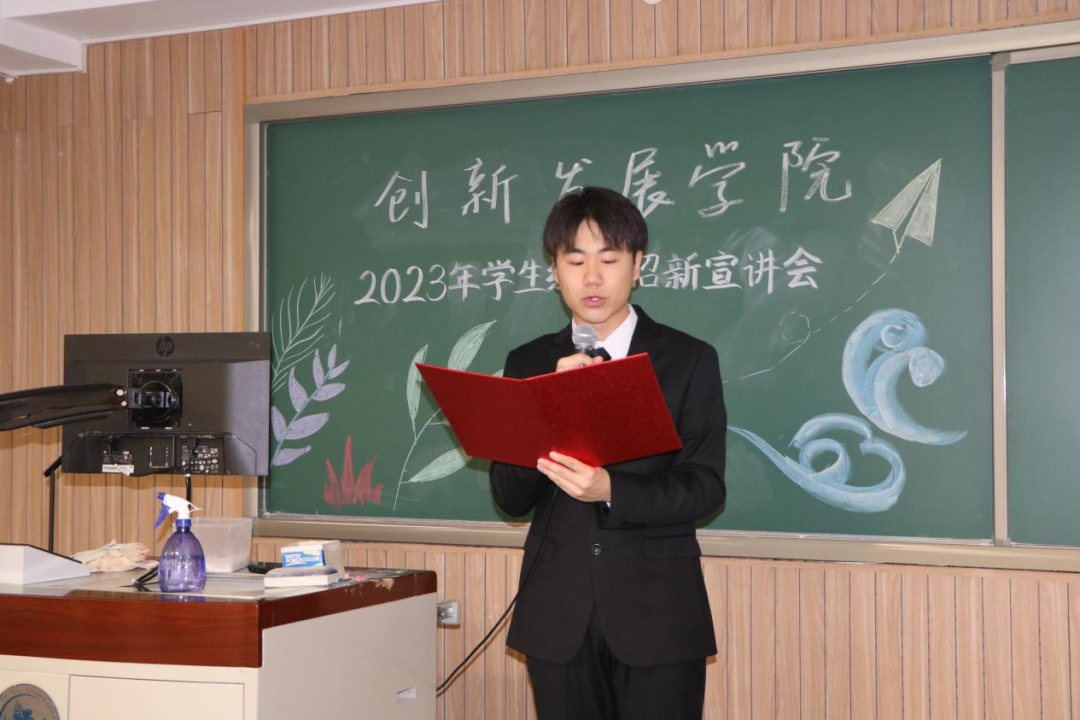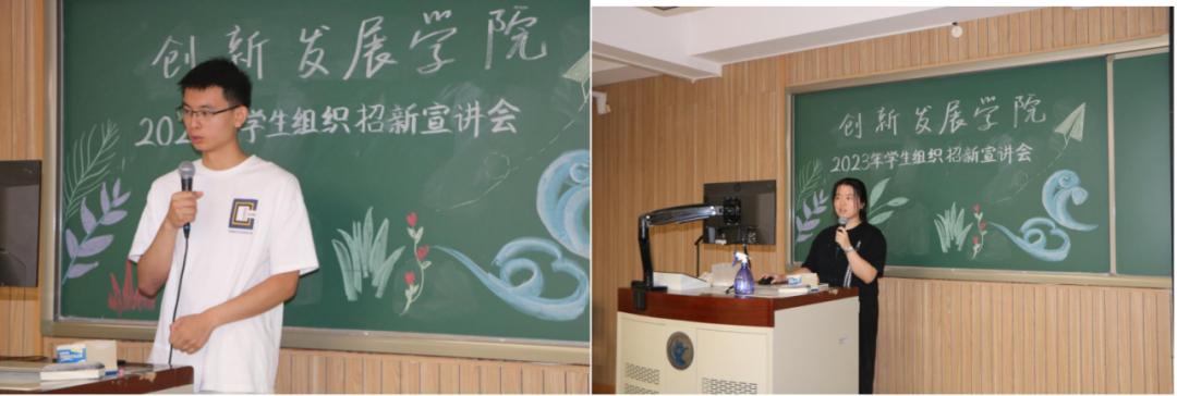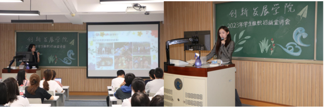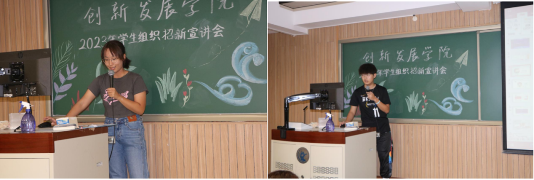 接下来是同学们期待的宣讲环节,团委、员工会、新闻中心各部门及各院队依次进行招新宣讲,部门负责人和院队队长们热情饱满,详细准确地介绍了部门和院队特色、基本职责、活动氛围等,在座的同学们都跃跃欲试,希望能在自己向往的部门中留下青春的痕迹。