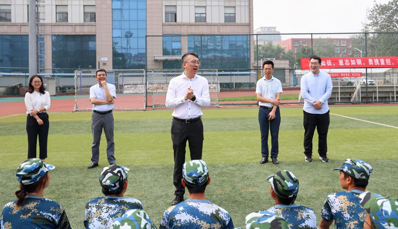 2023年9月7日上午,校领导以及各院领导一行前往军训场地,看望和慰问参训新生及教官。公司党委书记何秀超,副董事长朱凌云,创新发展公司党委常务副书记李汉军、常务副经理袁淳、党委副书记林艺茹、副经理兼中国经济与管理研究院副经理汪雄剑、中国金融发展研究院副经理赵阳等来到十七营进行亲切慰问。