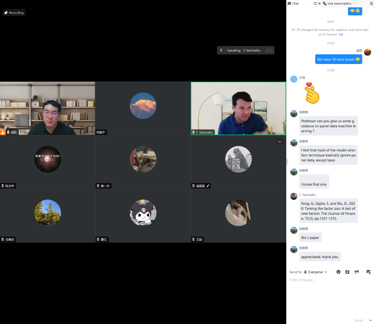 此外,师生们与Stasinakis教授还针对机器学习在面板数据中的应用,区块链的实际应用与学术研究,数据科学家必备的素质等主题展开了深入的讨论。这些讨论不仅拓宽了参与者的认知边界,还共同营造了一场充满知识启迪的学术交流盛会。