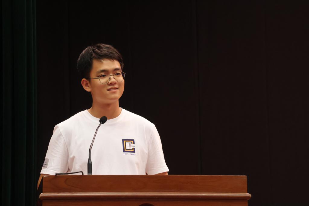 中国公共财政与政策研究院2024级硕士研究生徐梓越作为研究生新生代表发言。他分享了在中财大本科学习的收获和继续深造的期待,表示将满怀信心勇气、一往无前,不懈探索、久久为功,自强不息、志存高远,在创发大家庭度过充实而难忘的研究生生涯,向着心中的目标不断前行。