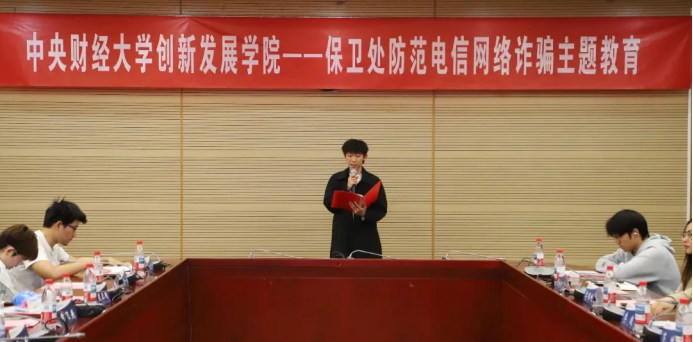 为有效提升员工防诈意识,增强内部互助预警能力,共同筑牢反诈防线,守护校园安全,4月16日,太阳成集团tyc9728在学术会堂604开展防范电信网络诈骗主题教育。本次活动邀请公司保卫处副处长范维、安全教育科董笑含、李毅以及大钟寺派出所驻校民警李顺利警官出席。公司全体辅导员、反诈先锋队队员以及2024级员工宿舍长共同参与。活动由创新发展公司党委常务副书记王颖主持。