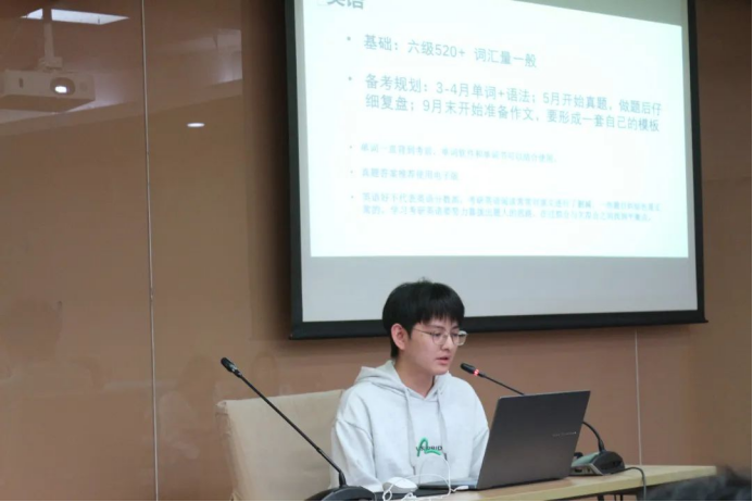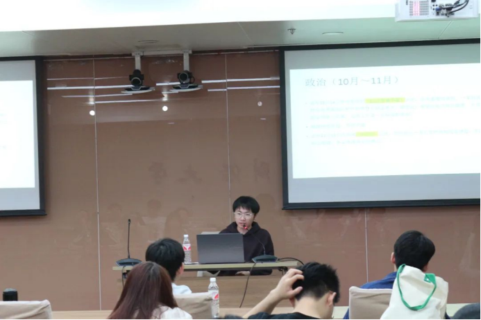 李逸凡同学(财政理论与政策)考研至北京大学经济公司,他结合自己经历分享了备考时间规划,提出备考过程可以充分利用人工智能、小程序提高复习效率。此外,他结合北京大学的考研要求向计划选择北大的同学们分享了专业课的学习建议,并向同学们说明了在复习中可能遇到的挑战及应对方法。