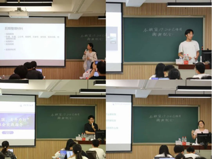 2025年6月6日,第二期暑期社会实践培训课程于主教303举办。本期课程由徐琪萱、高千桁、黄子为和李祎博四位往届实践优秀同学带来暑期社会实践的经验分享。