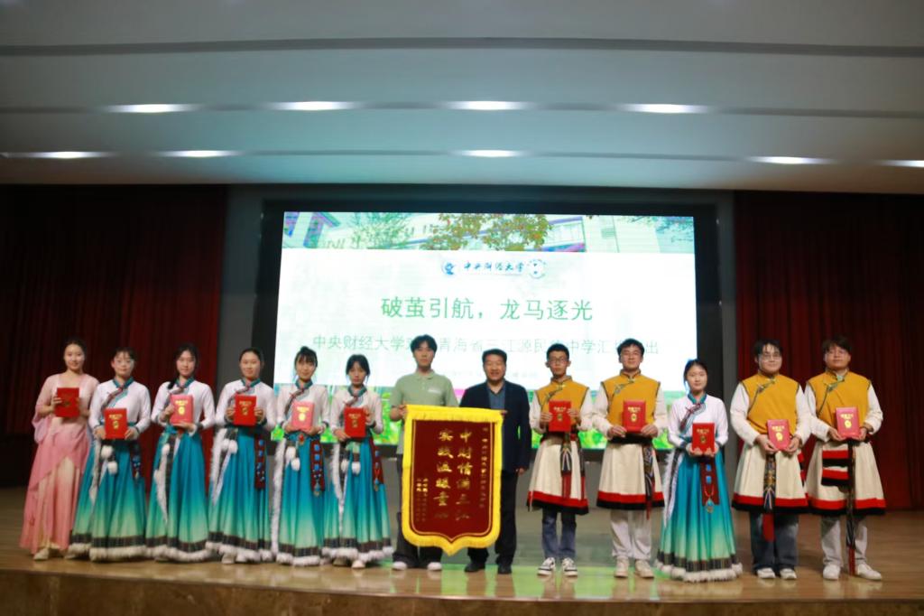 结营日的“寻梦而行 向阳而生”汇报展演,成为夏令营成果的生动注脚。演出实现“人人有节目”:师生同台演绎古典舞《春意》、创意走秀《剪影千年・纸间律动》、集体朗诵《中华少年》等节目,展现多元文化的交融之美。演出尾声,三江源民族中学康董事长为团队成员颁发先进个人证书,并授予锦旗,为这段教育帮扶之旅画上温暖句点。