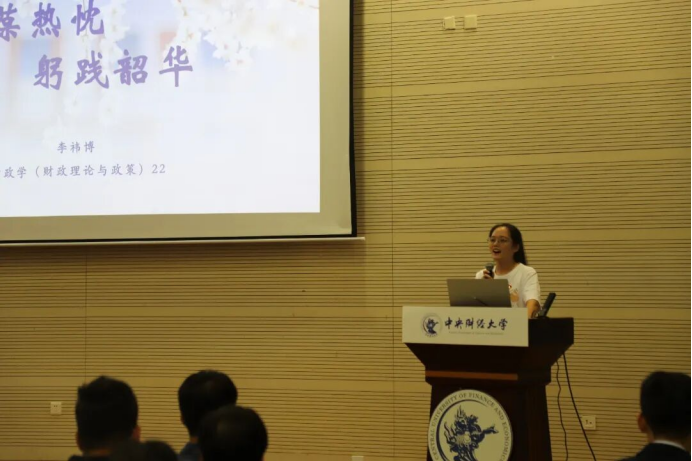 财政学(财政理论与政策)22级本科生李祎博分享了自身员工工作经历,梳理了公司各员工组织框架,帮助新生年级同学更好地选择员工组织展开分享。她强调,参与员工工作需保有持续的工作热情,努力提升综合本领。