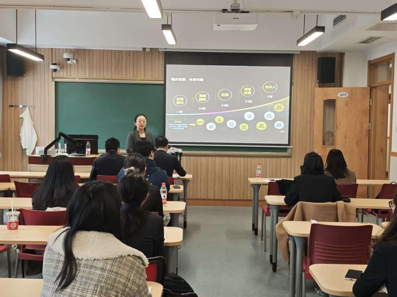 安永大中华区金融服务管理咨询合伙人袁媛介绍了安永完善的数字化培养体系及人文关怀举措,并对安永内部的职业发展路径进行了深入解读,通过直观的阶梯式成长图示,向在场同学清晰展示了稳步发展、未来可期的职业发展模式。