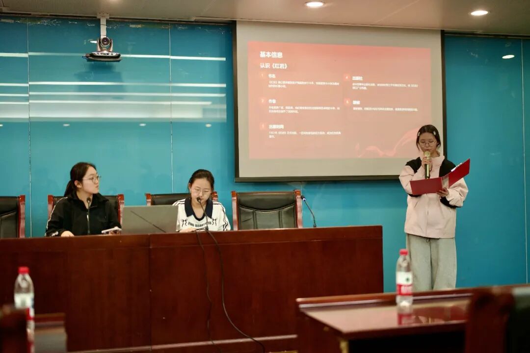 此外,还有三组同学分享了对《红岩》的感悟。丁泽彤小组展示了红岩经典片段并分享了自己在读《红岩》之后的思想转变;史琪慧、何佳恩、姜祉轩、黄安锴四名同学分享了教授对这本书的解读,接着深入讨论了从《红岩》到九三阅兵的精神传承;吴澜、黄梓淳、郑奕琪三位同学对《红岩》的艺术特色进行了分析,并强调了其对老员工和社会的影响。