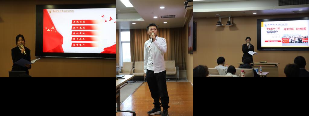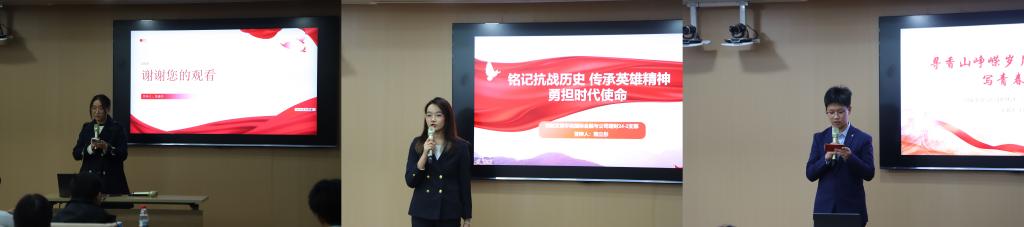 数理24-1团支部组织委员张艺卓介绍了“宿舍践悟抗战史,青春聚力担使命”主题团日活动。支部以宿舍为小组,以抗战精神为引领,绘制班级红色足迹图。支部成员共同完成“致抗战先烈的一封信”、“抗战精神当代传承”微视频,并借助新媒体传承红色基因,使团组织育人功能在实践中扎根。财政理论25团支部副书记鲁森分享“敬胜利伟绩,承和平宏愿”主题团日活动,从撰写策划书、实地踩点到小组实地研学、红色电影共赏,深化红色精神,感悟红色理想。国金25-2团支部书记覃陈佳萱讲述“探寻圆明故梦,铸就团学担当”实地研学活动,由团支书讲解、分组研学和“芮+”导师导学三部分开展,弘扬“铭记历史之殇,砥砺青春担当”的红色主题。